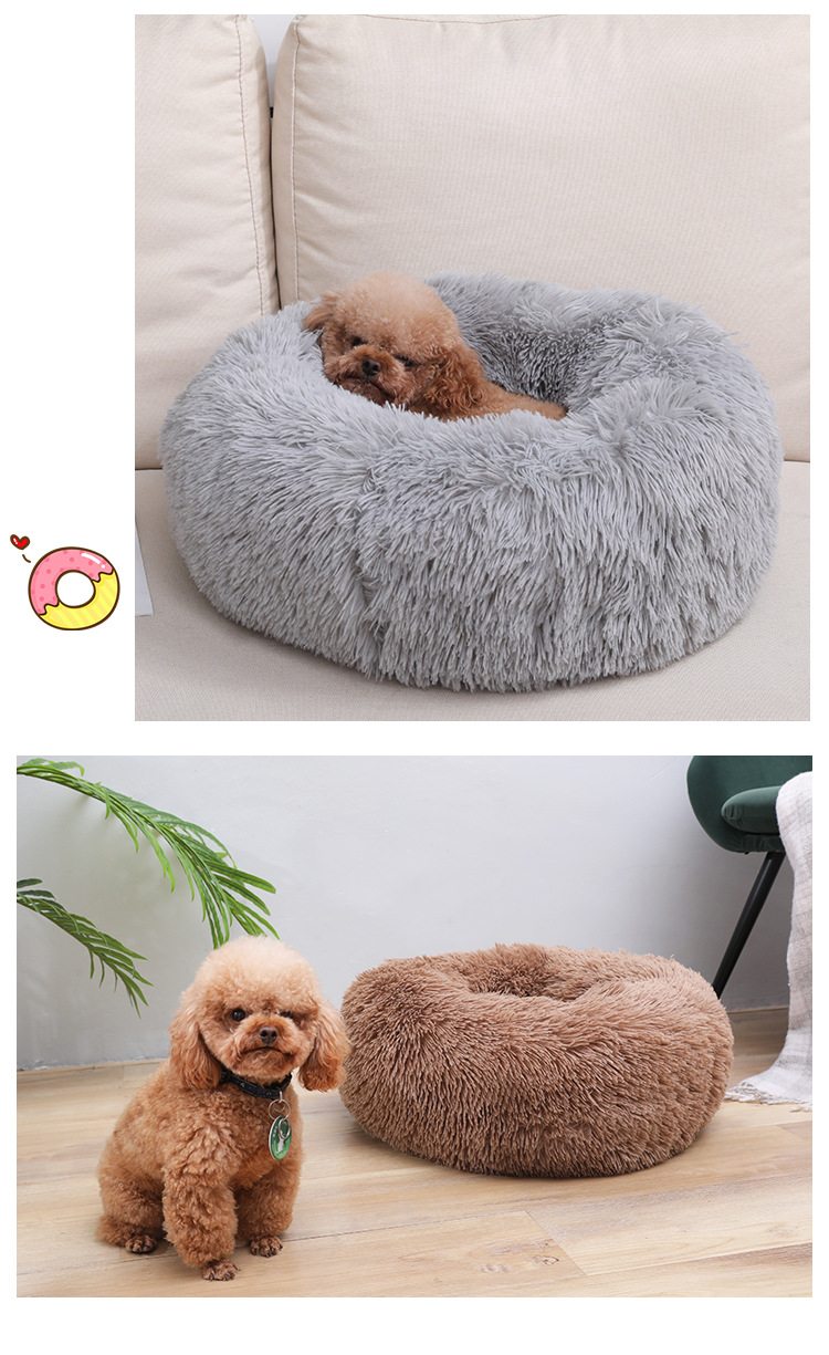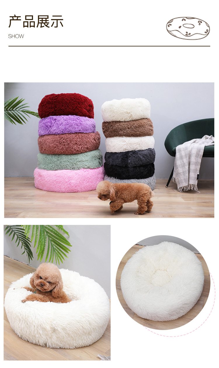 New Style 2023 Super Soft Dog Bed Round Washable Plush Fluffy Donut Dog Cat House Velvet Mats Sofa Dog Portable Pet Bed